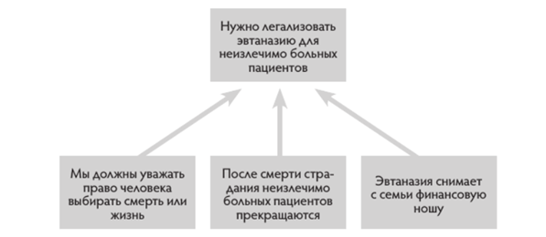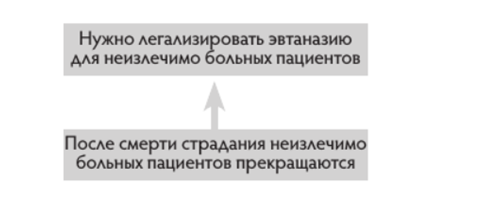 В предыдущем аргументе, например, спикер может сказать, что эвтаназию нужно
