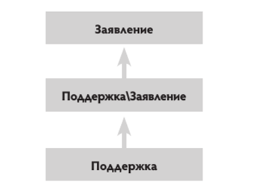 Данная модель учитывает то, что спикер редко знает наверняка, во что верит его аудитория и, таким образом, не может быть уверен в том, какие идеи сработают в качестве поддержки. Возможно и то, что спикер считает поддержкой определенного заявления, само по себе станет заявлением, к которому аудитория потребует поддержку.
